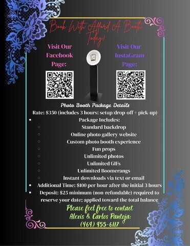 Please text 469-955-6117 or email affordabooths@gmail.com